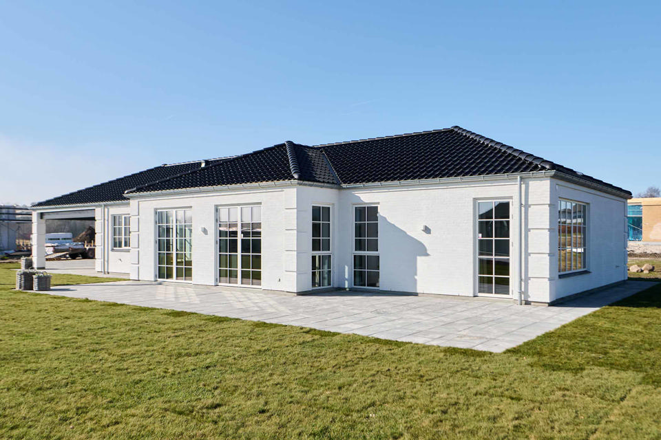 Vi kan dog også lave løsningen uden udhæng. Det ses ofte på huset i såkaldt palæstil, som det er tilfældet på billedet øverst på siden.