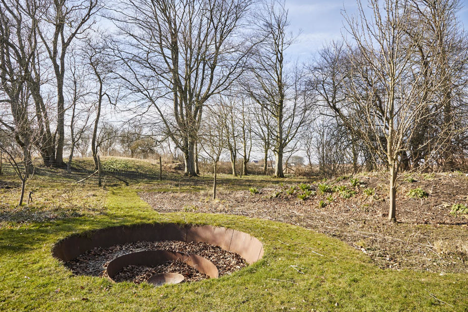 ”Vesterhavshytten” er bygget i glas, træ og står på hjul, så den kan hægtes på krogen og køres ned til vandet som sauna. ”Her i Thise kan den også bruges til ”klubhus” for Stand Up Paddle og kajakroer, hvis man vil det,” smiler Søren Vester, der konstant ser muligheder og mener, at man når langt, hvis man gør plads til ild, vand og læ i sin nybyggerhave. Grav en balje ned i haven som et lille bassin, byg en bålplads og arrangér et hjørne med læ, hvorfra du kan nyde synet af din have, lyder det.
