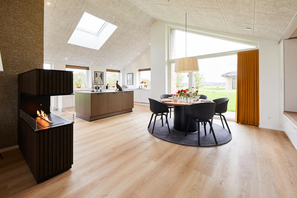 Overvej, hvor køkken-alrummet er placeret i planløsningen i forhold til verdenshjørnerne. Ved at placere køkken-alrummet mod sydvest vil rummet opnå et stærkere naturligt lys. Ovenlys eller lystuneller er også en mulighed i alrummet og giver et utroligt flot naturligt lys i hverdagen.