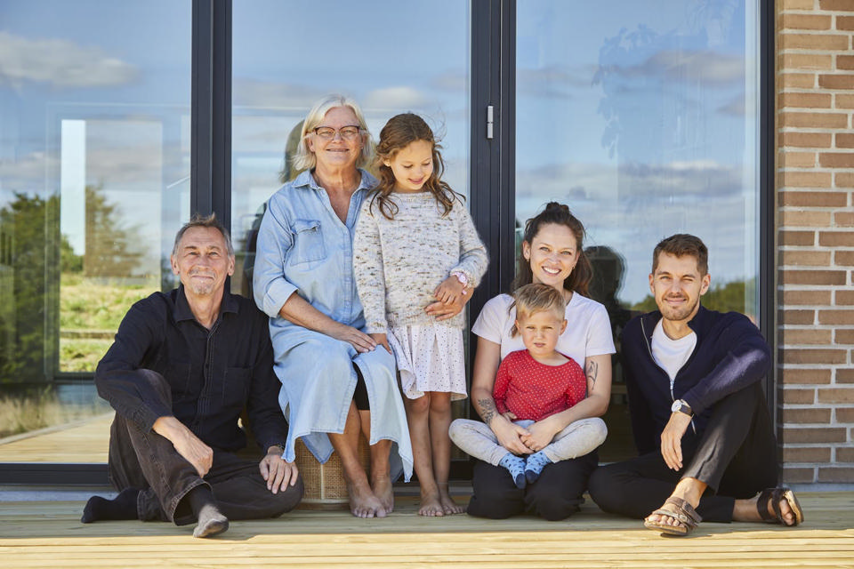 Sidst mødtes vi på en tom byggegrund i Rodskov. Alt imens børnene plukkede markblomster lagde forældre og bedsteforældre vilde planer om en fælles fremtid. Helt tæt på hinanden, og alligevel hver for sig. Drømmen var oprindeligt et flere-families hus, som kunne rumme dem alle, men da den slags ikke hænger på træerne, opstod idéen om at bygge to huse i samarbejde med Milton Huse.