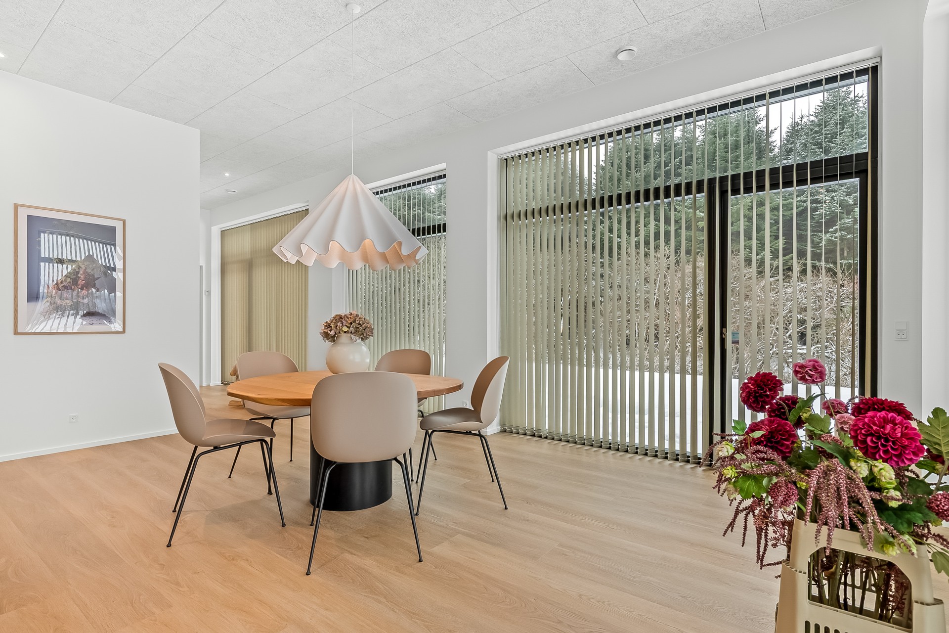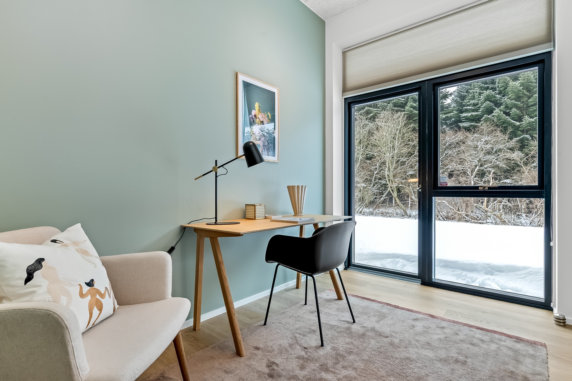 Udelivet er tænkt ind i hverdagen: Haven kan tilgås via flere døre, så det er let at træde ud på terrassen, uanset om du befinder dig i soveværelset, kontoret, stuen eller køkkenet.