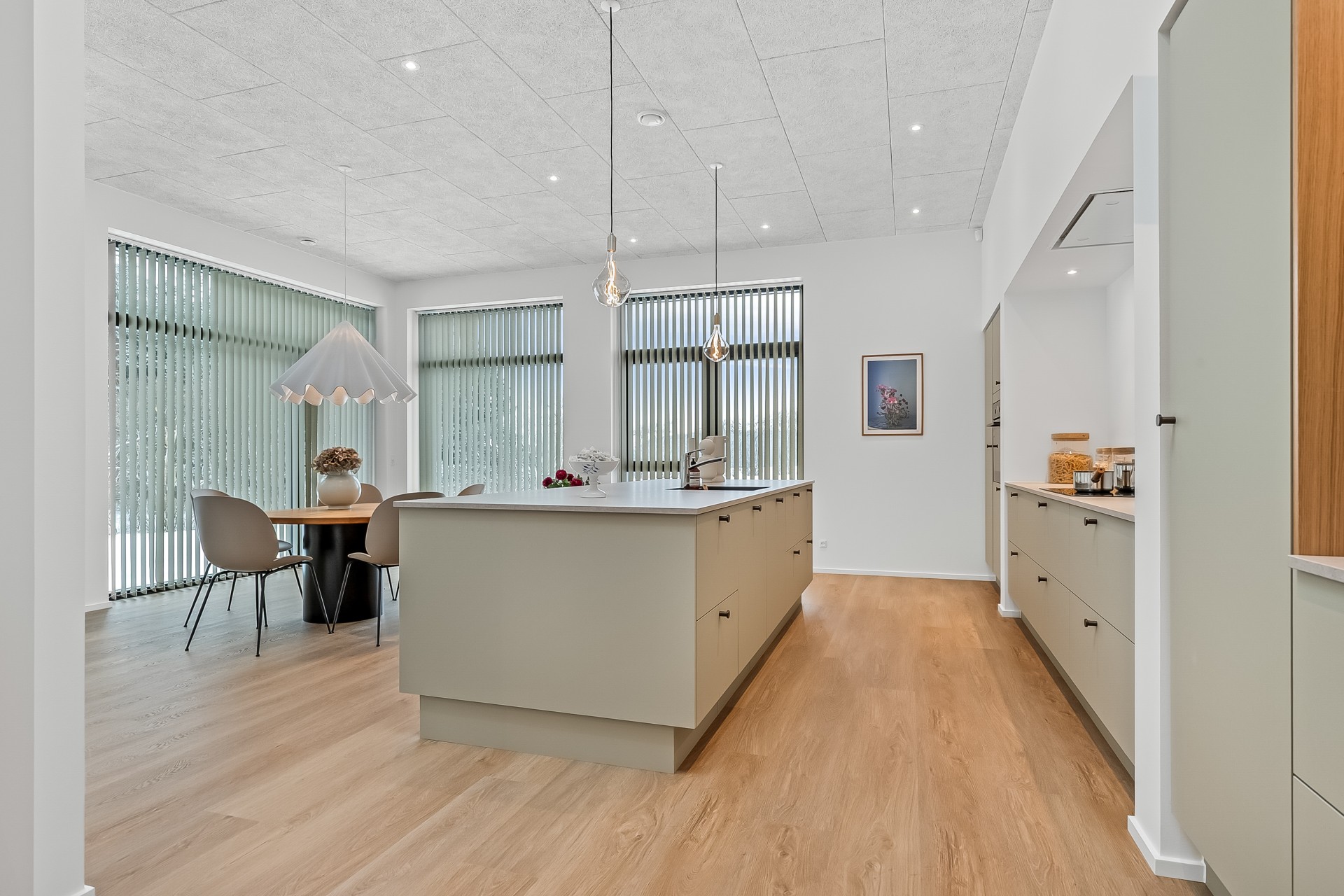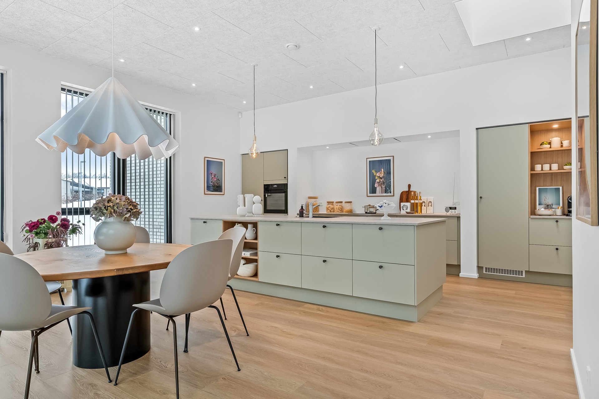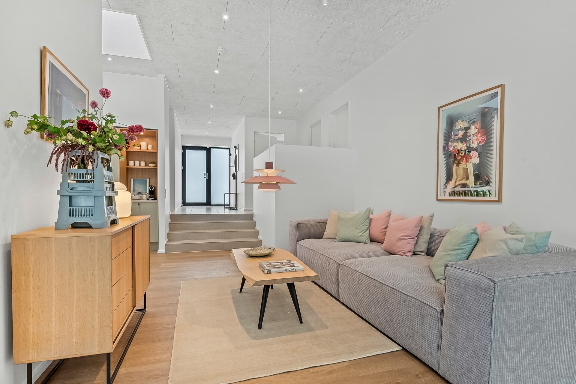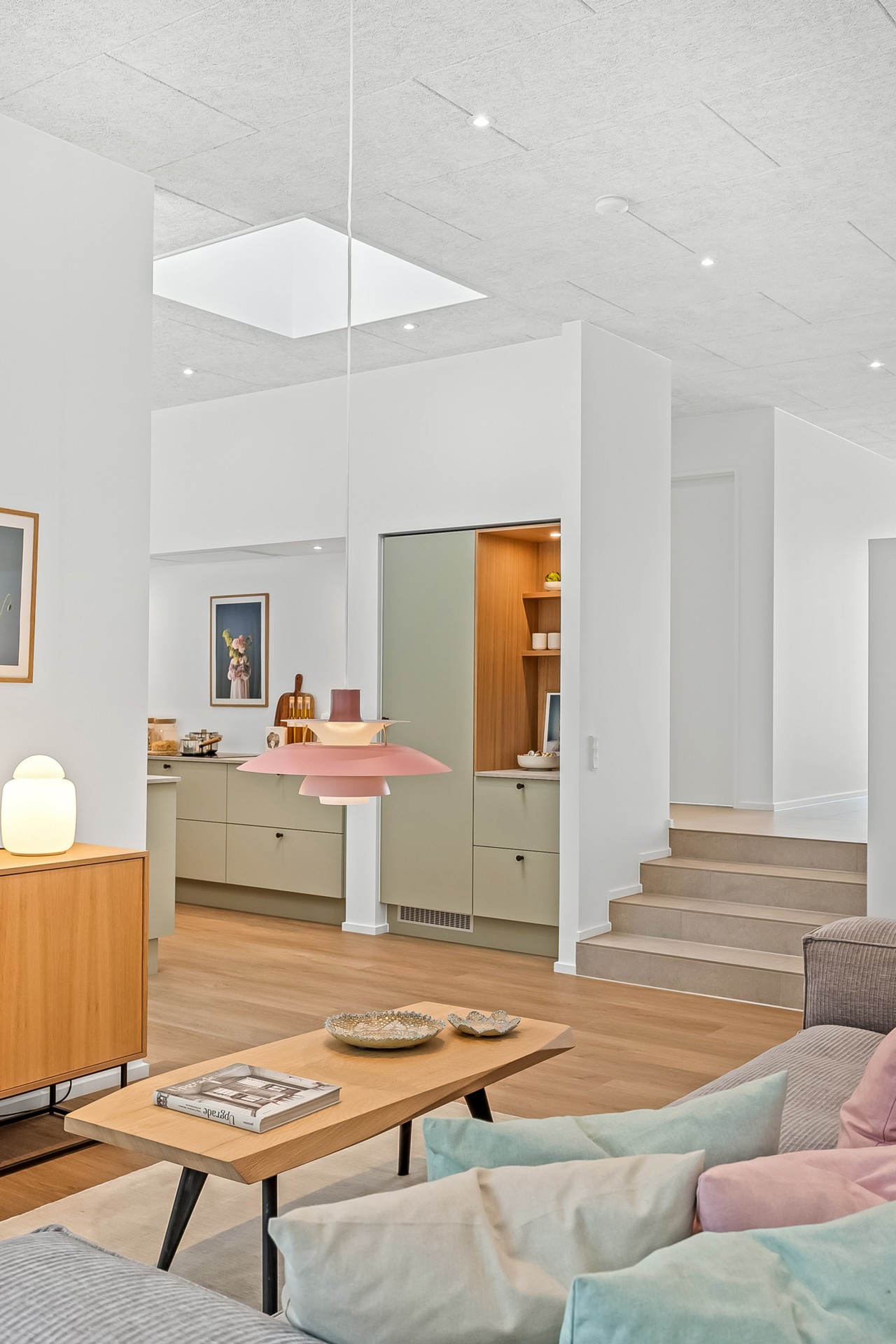 Et hjem med masser af luft, lys og sammenhæng – og et centralt leverum, der løfter hverdagen.