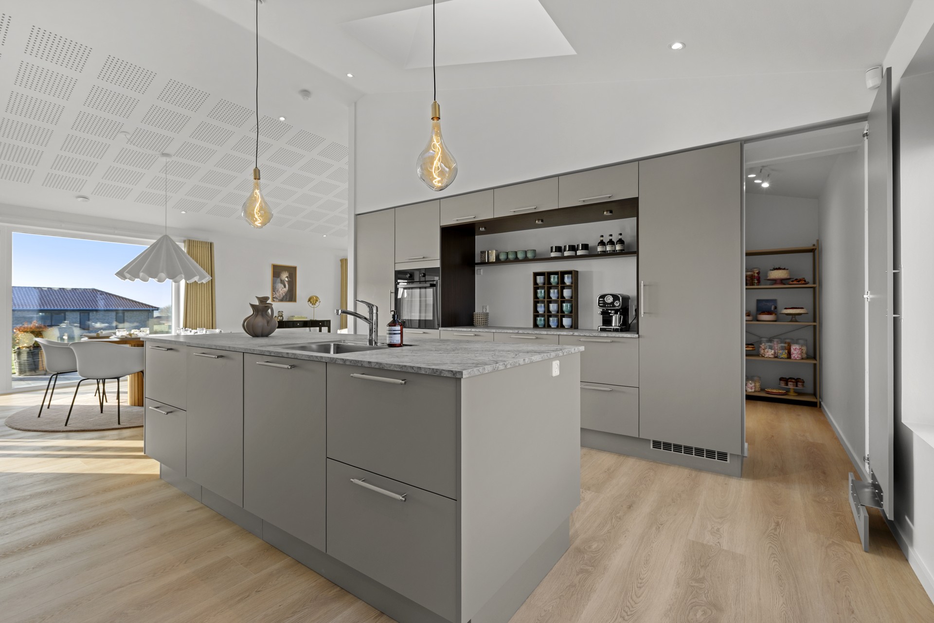 Oplev en bolig, hvor store selskaber og hverdagens funktionalitet er tænkt ind i planløsningen.
