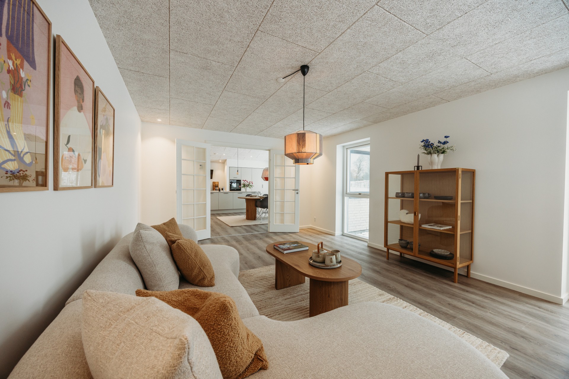 Boligen er indrettet med lyse og vedligeholdelseslette materialer hele vejen igennem, gode opbevaringsmuligheder og akustiklofter. Der er gulvvarme i hele huset samt ventilation med varmegenvinding, som bidrager til et sundt indeklima og en lav energiregning.