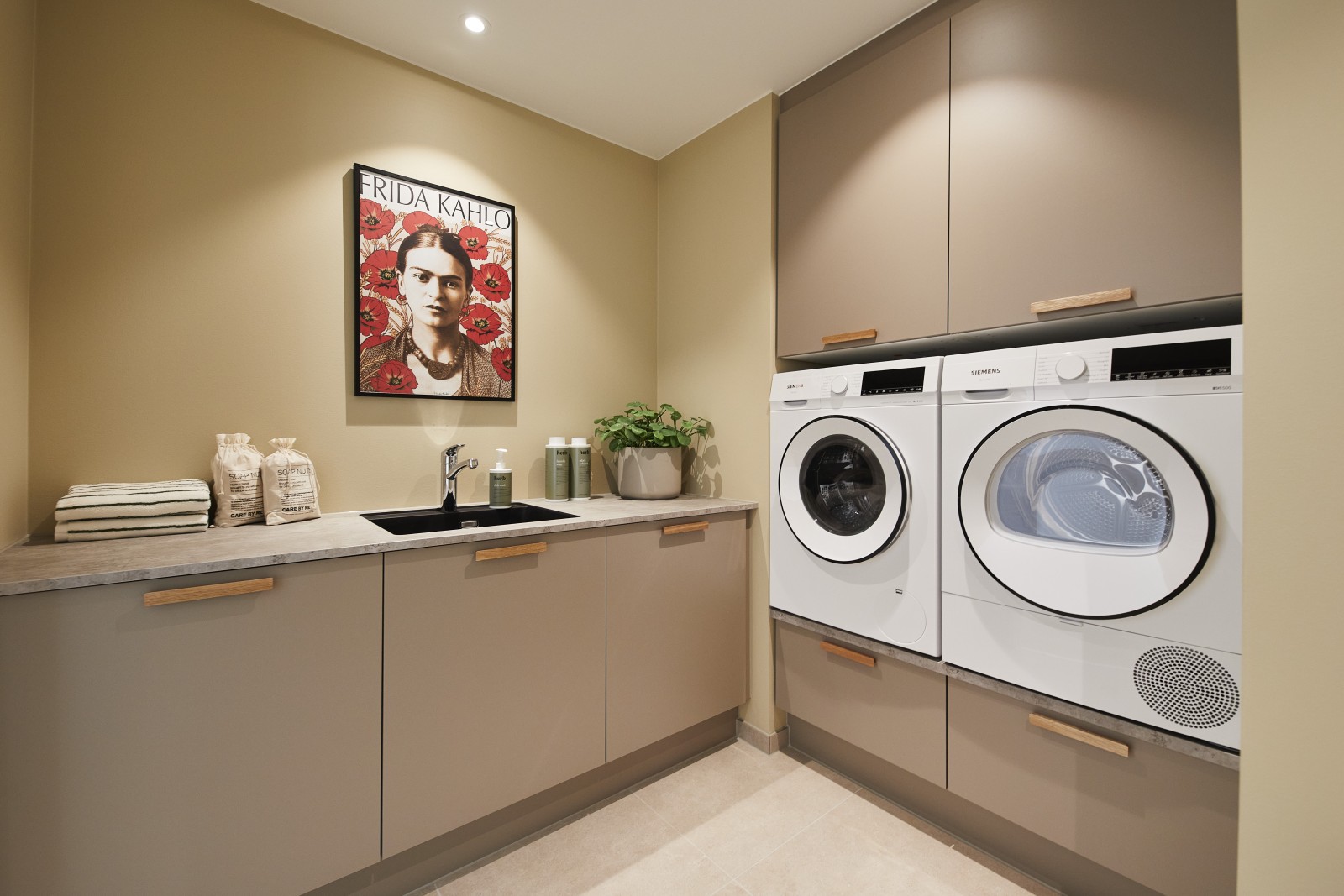 Multirummet fungerer samtidig som fordelingscentral og samlingspunkt i husets værelsesfløj. Et vaskerum er praktisk placeret, så det er nemt at smide tøj til vask uden at skulle krydse hele huset. Forældreafdelingen har eget bad, et stort walk-in og er placeret, så der altid kan lukkes to døre til fællesområdet og dermed skærmes for støj. I brusenichen er der desuden indbygget en bænk – en lille detalje, som giver ekstra funktionalitet i hverdagen.