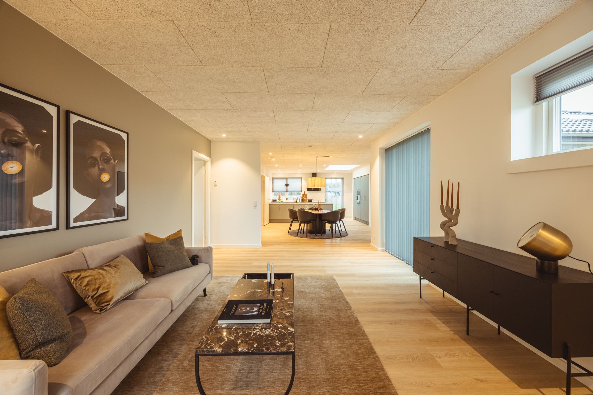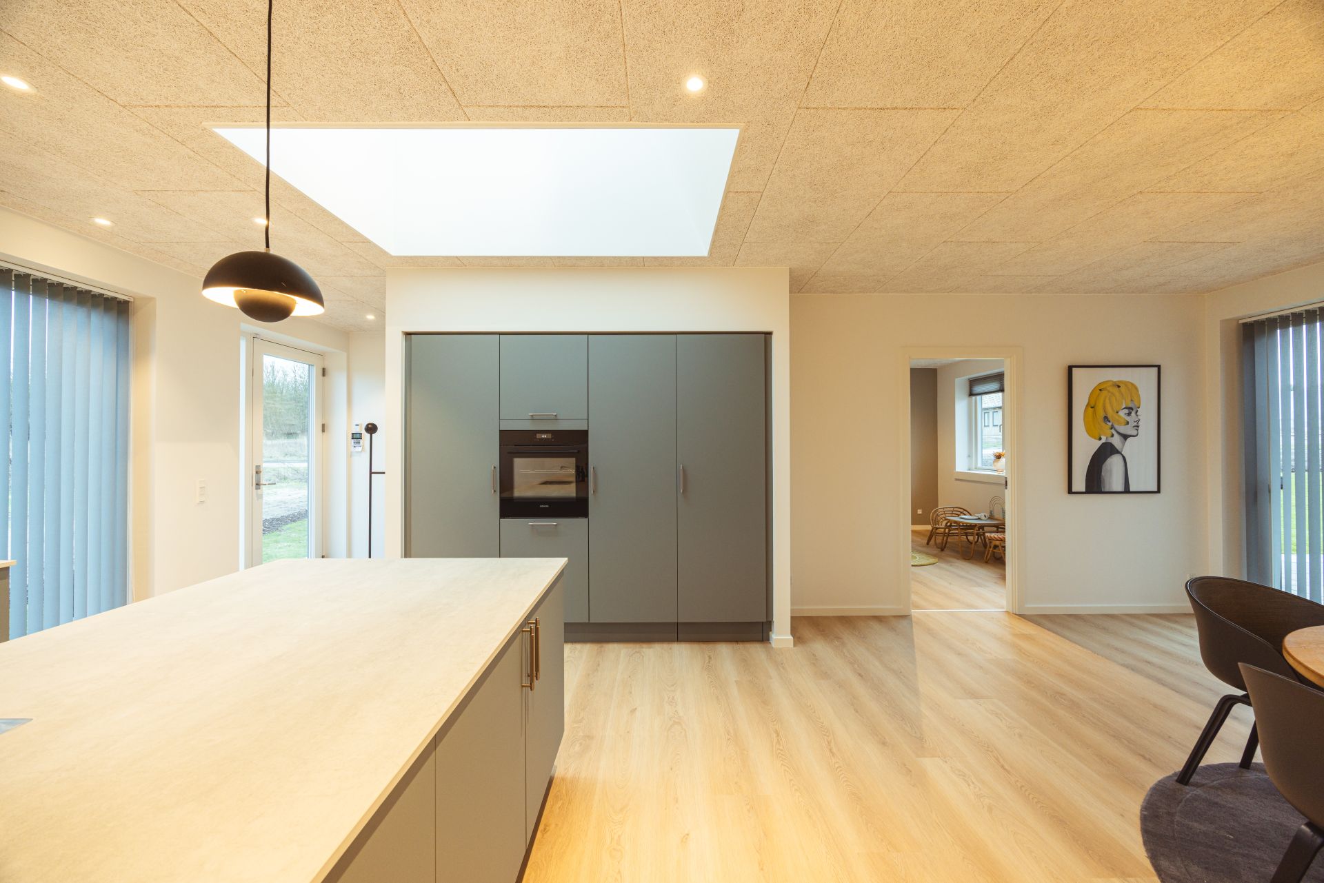 Loftshøjden er hævet til 255 cm i hele boligen, og vinduerne øget med 20 cm, hvilket giver en god rumfornemmelse og masser af lysindfald. På gulvene ligger akustikgulve med korkbagside fra Timbermann, som sammen med Troldtekt-lofterne sikrer en virkelig god komfort og et behageligt lydniveau i hverdagen.