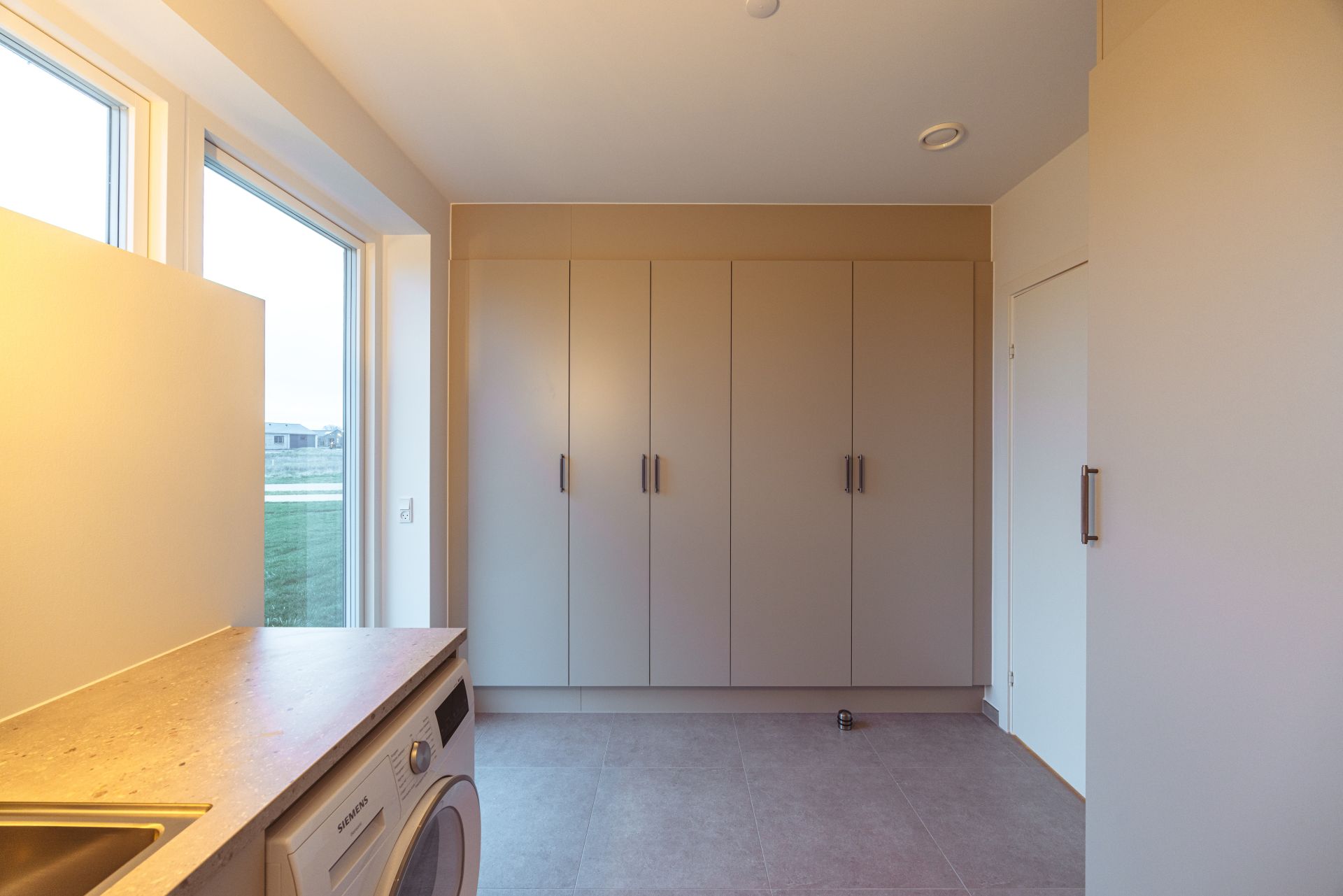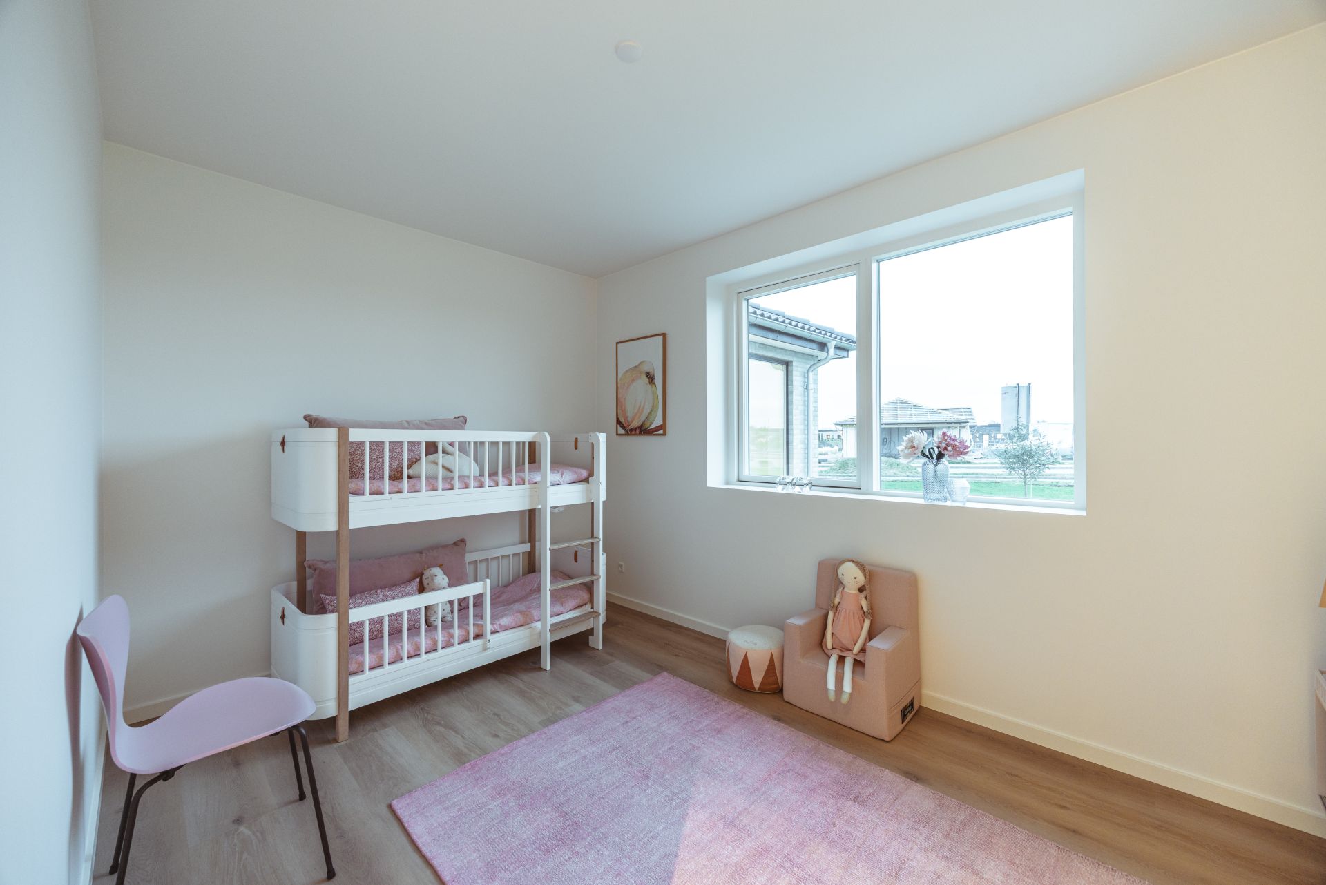 Her får du en separat børneafdeling med tre gode værelser og et badeværelse placeret langs en fordelingsgang. Dertil kommer et stort og praktisk designet bryggers med masser af gulv og skabsplads - ideelt til småbørnsfamilien.