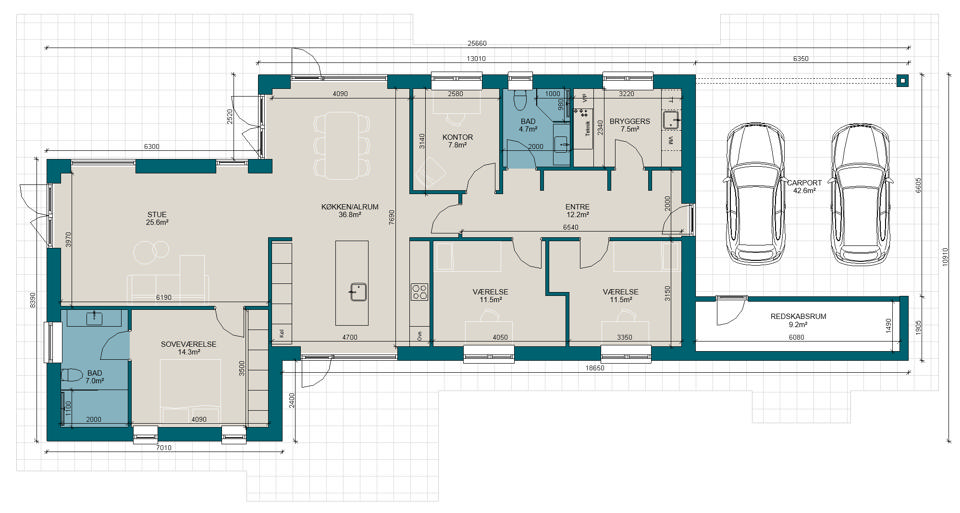 FL165-3 | Plantegning til nybyg | Milton Huse