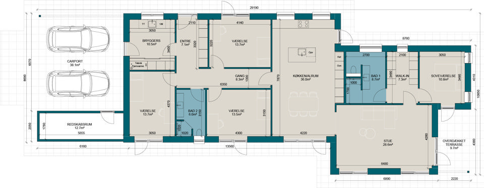 FL195 | Plantegning til nybyg | Milton Huse