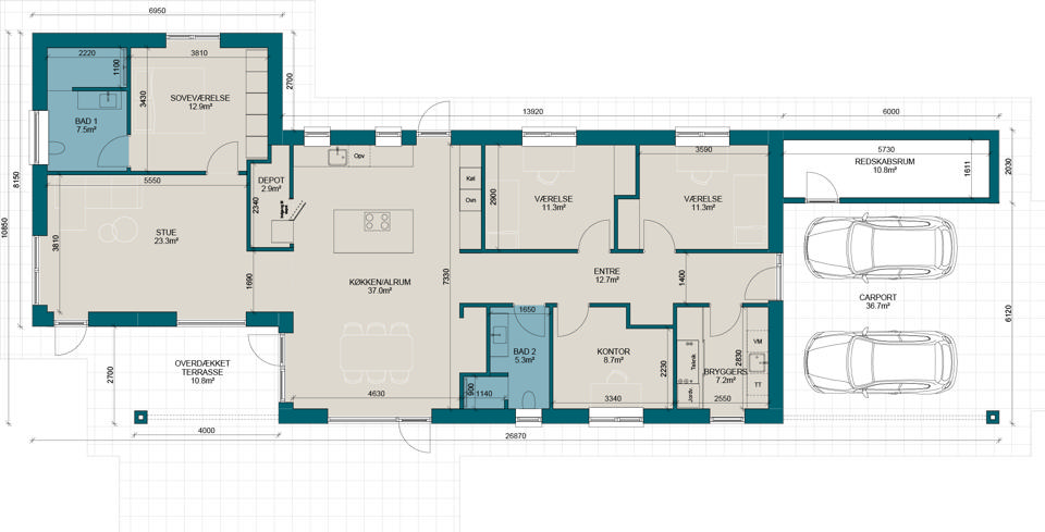Prisen vokser med antallet af kvadratmeter, men kvadratmeterprisen kan variere alt efter valg af materialer og arkitektur. Tænk over, hvad du har brug for nu – og i fremtiden. Vi skal nok hjælpe dig med at få det maksimale ud af pladsen – nogle gange kræver store idéer færre kvadratmeter, end man skulle tro.
