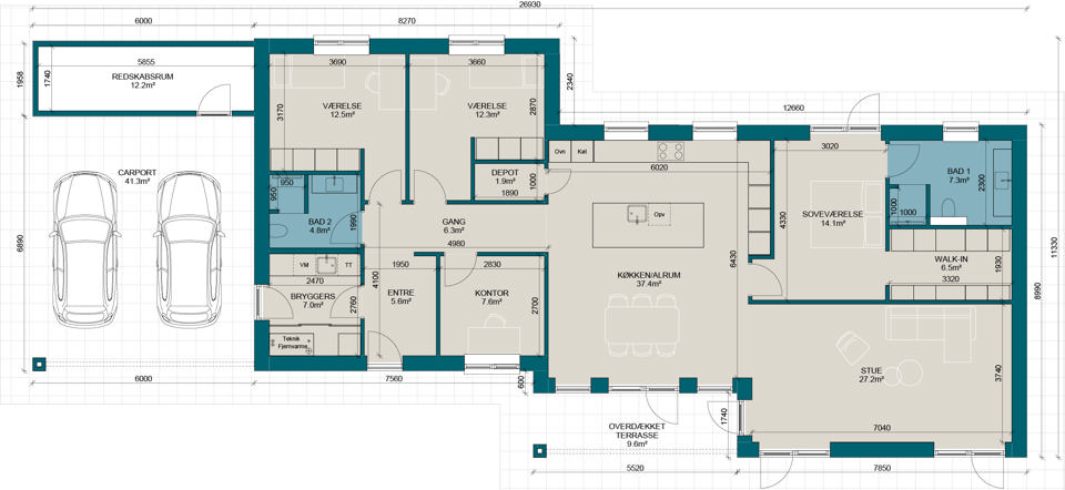 FL180 | Plantegning til nybyg | Milton Huse