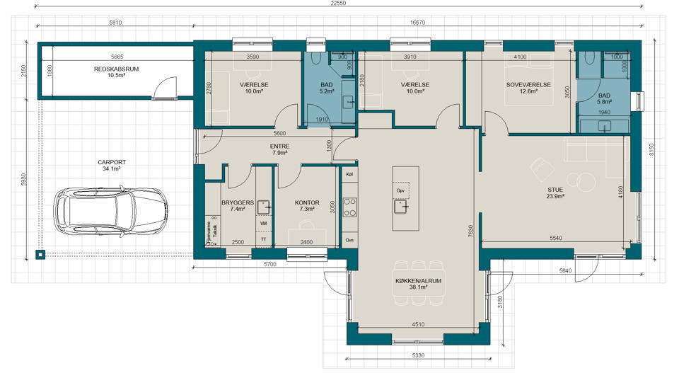 Prisen vokser med antallet af kvadratmeter, men kvadratmeterprisen kan variere alt efter valg af materialer og arkitektur. Tænk over, hvad du har brug for nu – og i fremtiden. Vi skal nok hjælpe dig med at få det maksimale ud af pladsen – nogle gange kræver store idéer færre kvadratmeter, end man skulle tro.