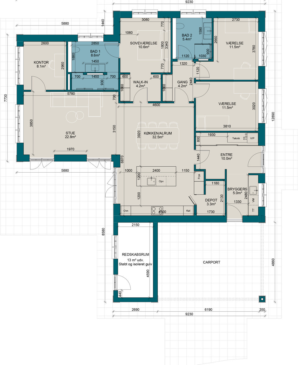 FV164-2 | Plantegning til nybyg | Milton Huse