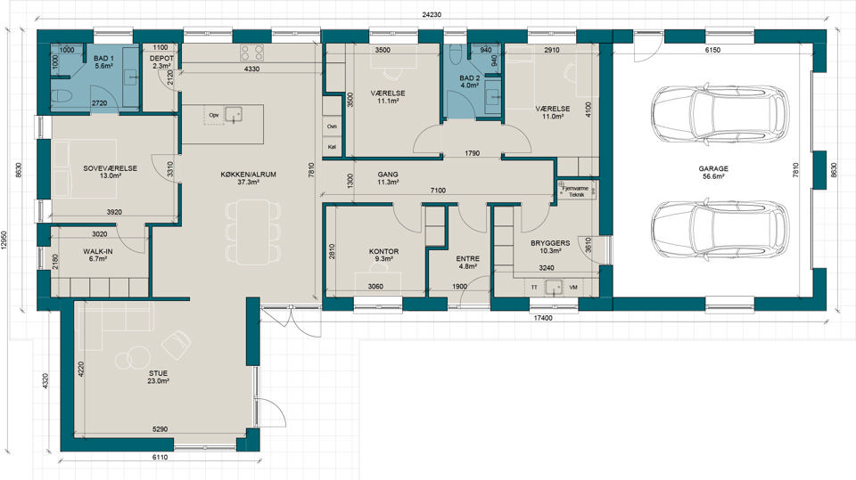 FV175-3 | Plantegning til nybyg | Milton Huse