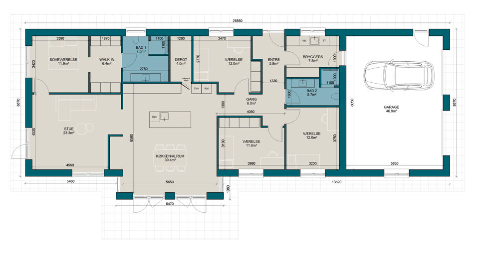 Et længehus på 160 kvm kan se ud på tusind forskellige måder, og prisen på et typehus afhænger blandt andet af dine ønsker til materialer, konstruktion og beliggenhed. Derfor kan vi først give et seriøst prisoverslag, når vi har hørt lidt nærmere om dine ønsker til huset. Så ved vi, om det er et hus til 2.500.000 eller 3.500.000.