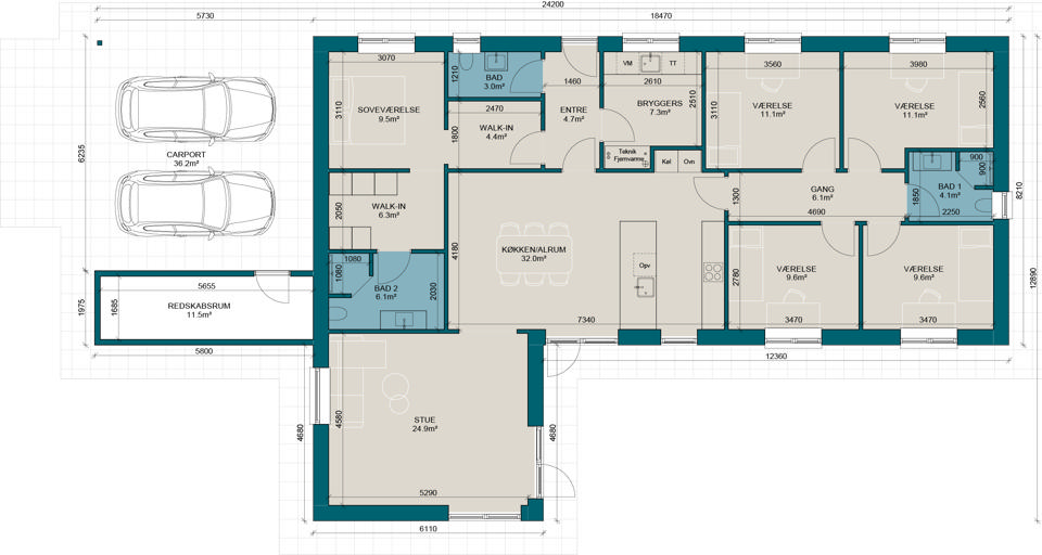 FV180-4 | Plantegning til nybyg | Milton Huse