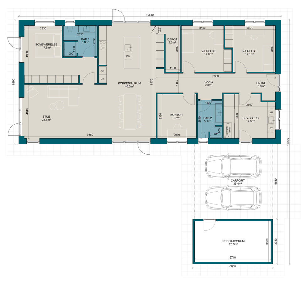 Prisen vokser med antallet af kvadratmeter, men kvadratmeterprisen kan variere alt efter valg af materialer og arkitektur. Tænk over, hvad du har brug for nu – og i fremtiden. Vi skal nok hjælpe dig med at få det maksimale ud af pladsen – nogle gange kræver store idéer færre kvadratmeter, end man skulle tro.