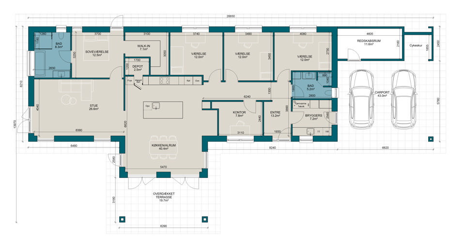 Prisen vokser med antallet af kvadratmeter, men kvadratmeterprisen kan variere alt efter valg af materialer og arkitektur. Tænk over, hvad du har brug for nu – og i fremtiden. Vi skal nok hjælpe dig med at få det maksimale ud af pladsen – nogle gange kræver store idéer færre kvadratmeter, end man skulle tro.