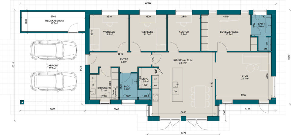 Prisen vokser med antallet af kvadratmeter, men kvadratmeterprisen kan variere alt efter valg af materialer og arkitektur. Tænk over, hvad du har brug for nu – og i fremtiden. Vi skal nok hjælpe dig med at få det maksimale ud af pladsen – nogle gange kræver store idéer færre kvadratmeter, end man skulle tro.