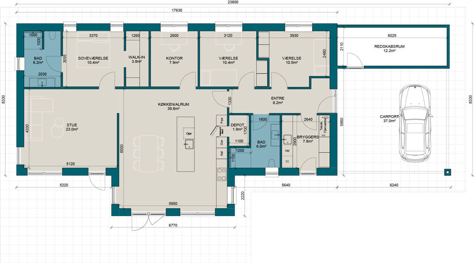 FV162-2 | Plantegning til nybyg | Milton Huse