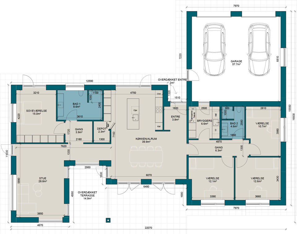Prisen vokser med antallet af kvadratmeter, men kvadratmeterprisen kan variere alt efter valg af materialer og arkitektur. Tænk over, hvad du har brug for nu – og i fremtiden. Vi skal nok hjælpe dig med at få det maksimale ud af pladsen – nogle gange kræver store idéer færre kvadratmeter, end man skulle tro.