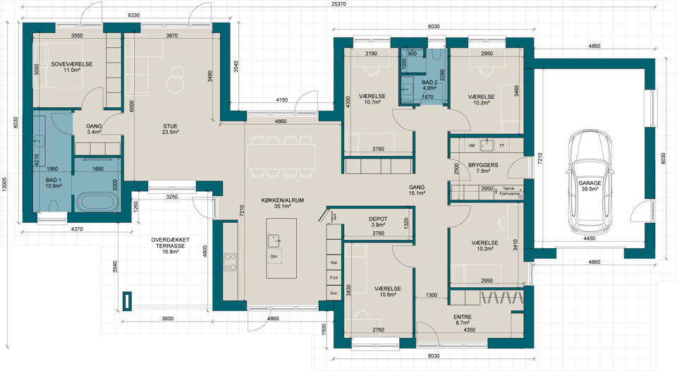Et længehus på 160 kvm kan se ud på tusind forskellige måder, og prisen på et typehus afhænger blandt andet af dine ønsker til materialer, konstruktion og beliggenhed. Derfor kan vi først give et seriøst prisoverslag, når vi har hørt lidt nærmere om dine ønsker til huset. Så ved vi, om det er et hus til 2.500.000 eller 3.500.000.