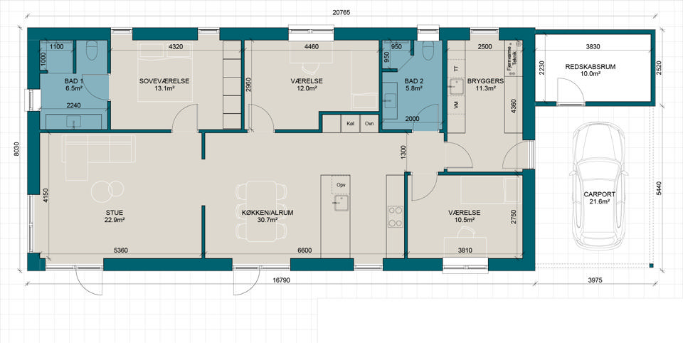 Prisen vokser med antallet af kvadratmeter, men kvadratmeterprisen kan variere alt efter valg af materialer og arkitektur. Tænk over, hvad du har brug for nu – og i fremtiden. Vi skal nok hjælpe dig med at få det maksimale ud af pladsen – nogle gange kræver store idéer færre kvadratmeter, end man skulle tro.