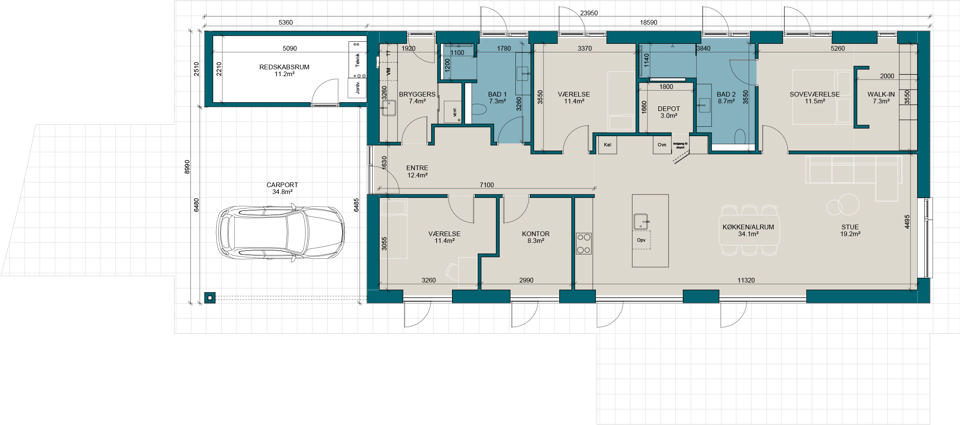 Prisen vokser med antallet af kvadratmeter, men kvadratmeterprisen kan variere alt efter valg af materialer og arkitektur. Tænk over, hvad du har brug for nu – og i fremtiden. Vi skal nok hjælpe dig med at få det maksimale ud af pladsen – nogle gange kræver store idéer færre kvadratmeter, end man skulle tro.