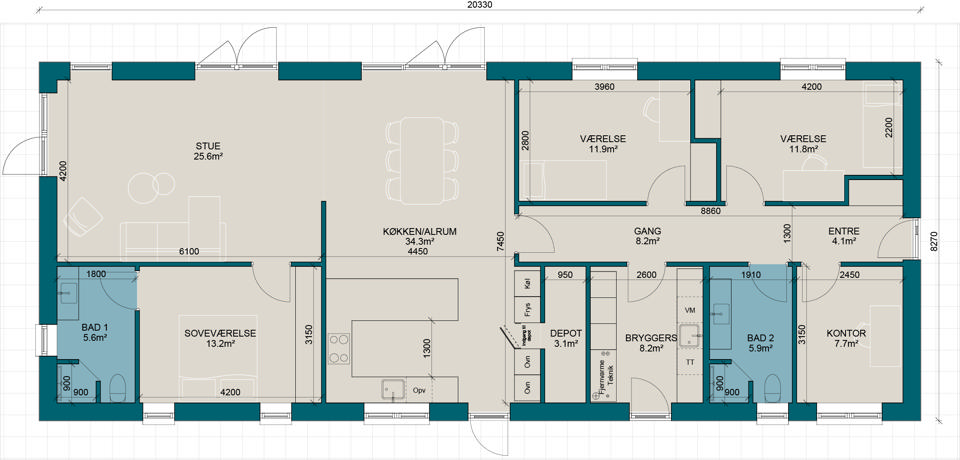 Et længehus på 160 kvm kan se ud på tusind forskellige måder, og prisen på et typehus afhænger blandt andet af dine ønsker til materialer, konstruktion og beliggenhed. Derfor kan vi først give et seriøst prisoverslag, når vi har hørt lidt nærmere om dine ønsker til huset. Så ved vi, om det er et hus til 2.500.000 eller 3.500.000.