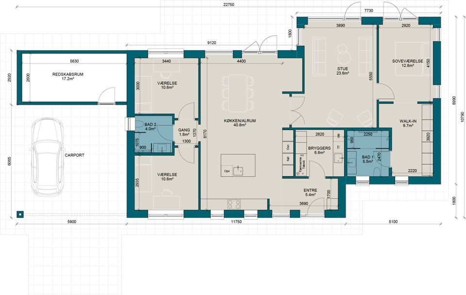 Prisen vokser med antallet af kvadratmeter, men kvadratmeterprisen kan variere alt efter valg af materialer og arkitektur. Tænk over, hvad du har brug for nu – og i fremtiden. Vi skal nok hjælpe dig med at få det maksimale ud af pladsen – nogle gange kræver store idéer færre kvadratmeter, end man skulle tro.