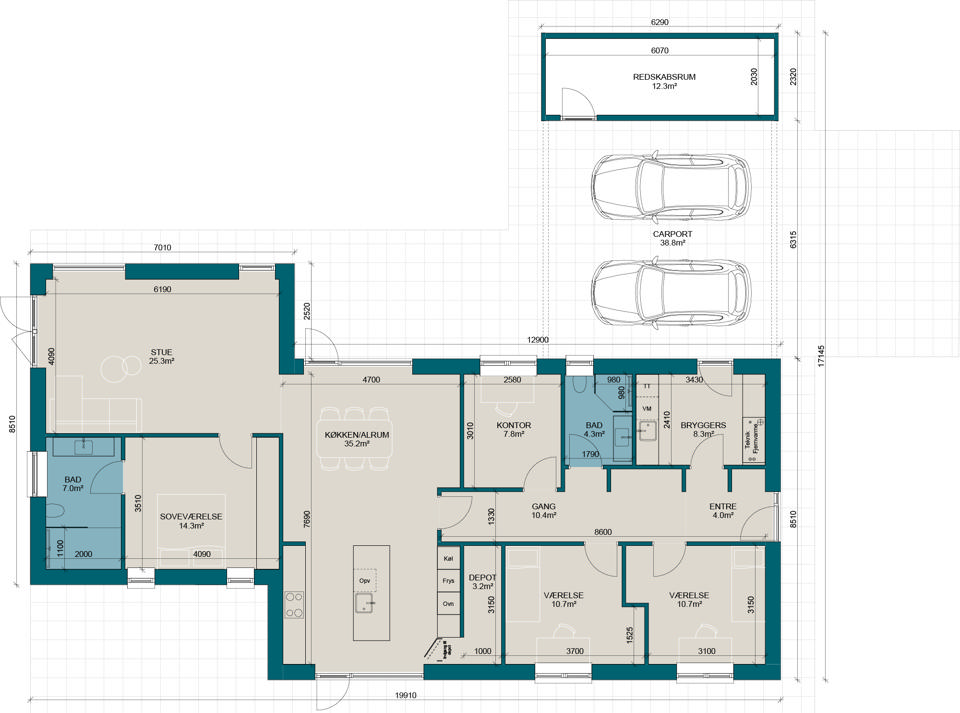 Prisen vokser med antallet af kvadratmeter, men kvadratmeterprisen kan variere alt efter valg af materialer og arkitektur. Tænk over, hvad du har brug for nu – og i fremtiden. Vi skal nok hjælpe dig med at få det maksimale ud af pladsen – nogle gange kræver store idéer færre kvadratmeter, end man skulle tro.