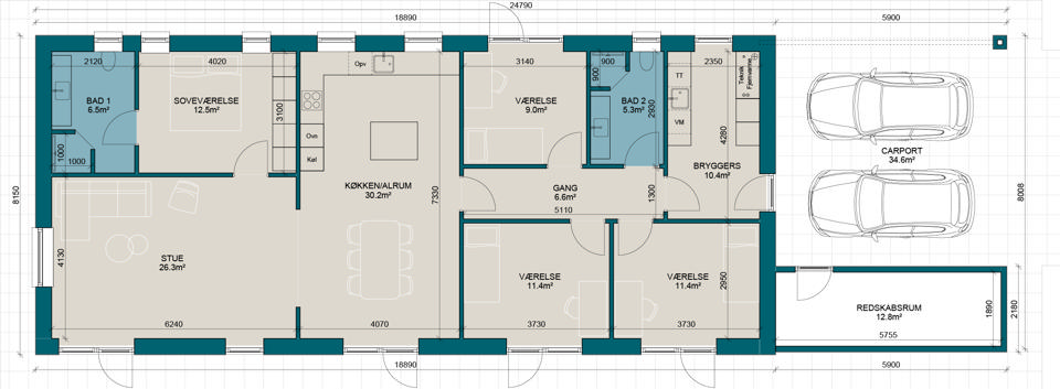 L154-2 | Plantegning til nybyg | Milton Huse