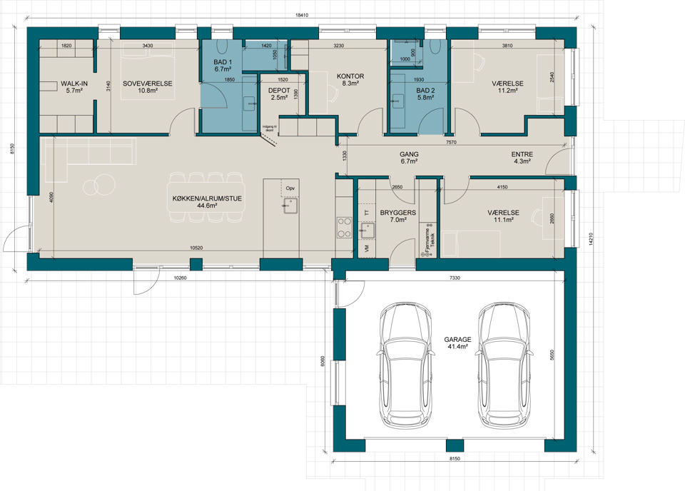 Prisen vokser med antallet af kvadratmeter, men kvadratmeterprisen kan variere alt efter valg af materialer og arkitektur. Tænk over, hvad du har brug for nu – og i fremtiden. Vi skal nok hjælpe dig med at få det maksimale ud af pladsen – nogle gange kræver store idéer færre kvadratmeter, end man skulle tro.