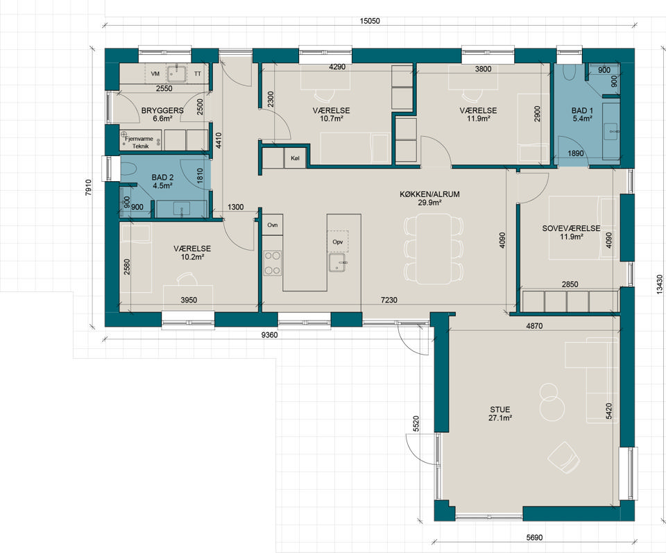V150-3 | Plantegning til nybyg | Milton Huse
