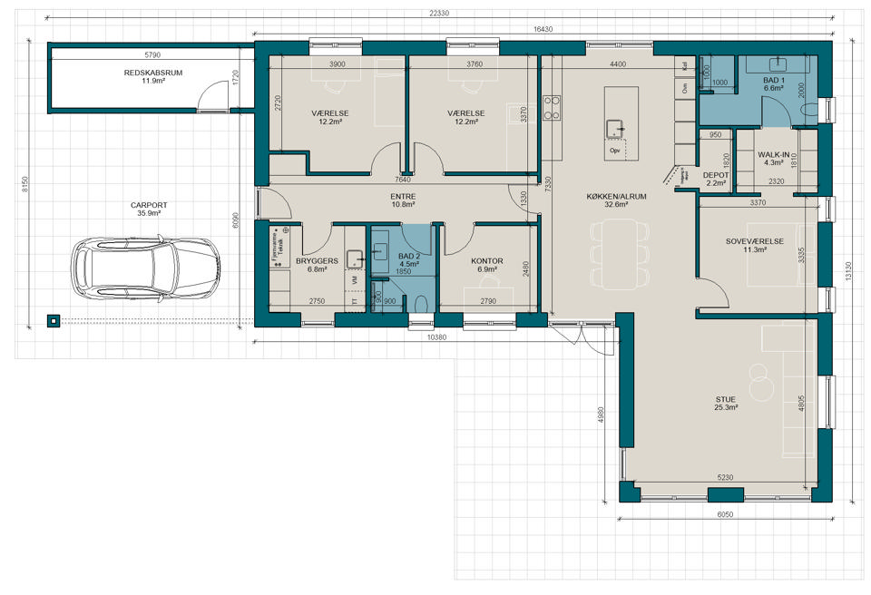 V160-2 | Plantegning til nybyg | Milton Huse