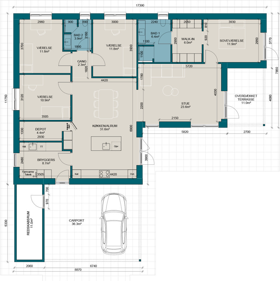 Prisen vokser med antallet af kvadratmeter, men kvadratmeterprisen kan variere alt efter valg af materialer og arkitektur. Tænk over, hvad du har brug for nu – og i fremtiden. Vi skal nok hjælpe dig med at få det maksimale ud af pladsen – nogle gange kræver store idéer færre kvadratmeter, end man skulle tro.