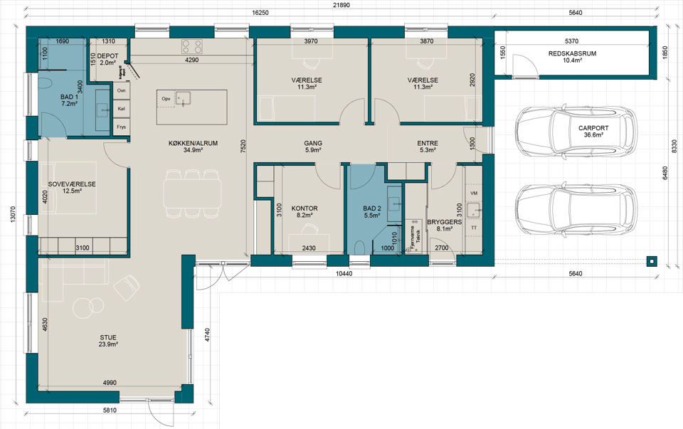 V163 | Plantegning til nybyg | Milton Huse