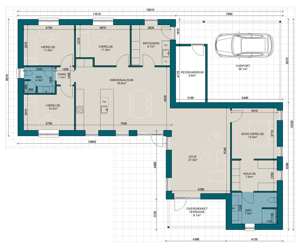Prisen vokser med antallet af kvadratmeter, men kvadratmeterprisen kan variere alt efter valg af materialer og arkitektur. Tænk over, hvad du har brug for nu – og i fremtiden. Vi skal nok hjælpe dig med at få det maksimale ud af pladsen – nogle gange kræver store idéer færre kvadratmeter, end man skulle tro.
