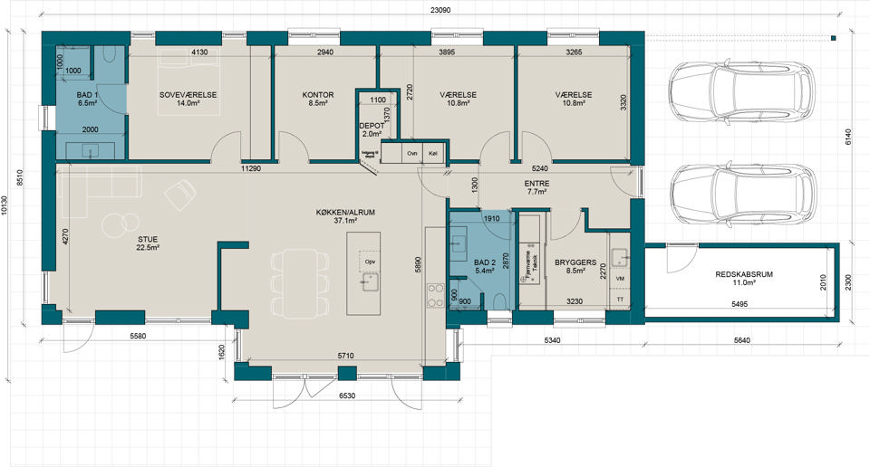 FV159-2 | Plantegning til nybyg | Milton Huse