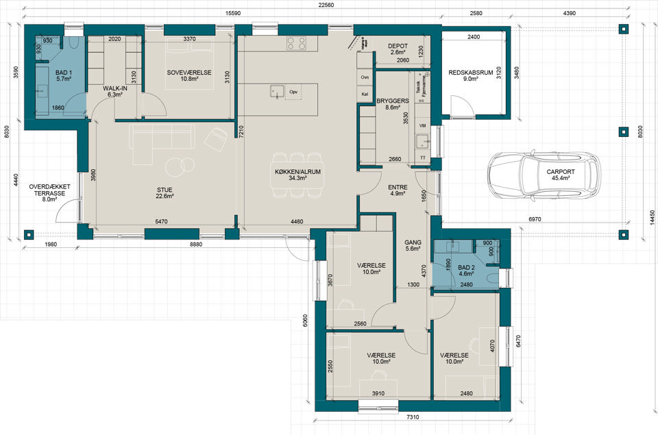 FV165-4 | Plantegning til nybyg | Milton Huse