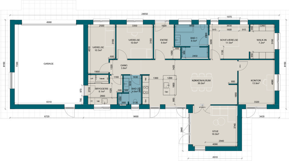 FV165-8 | Plantegning til nybyg | Milton Huse