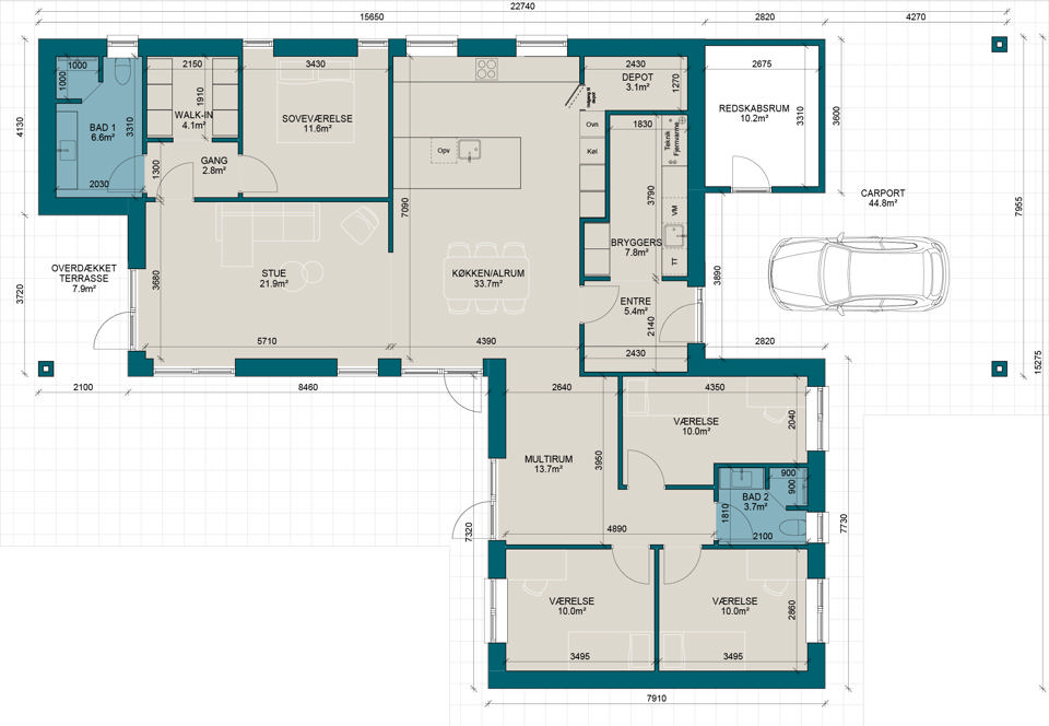 Prisen vokser med antallet af kvadratmeter, men kvadratmeterprisen kan variere alt efter valg af materialer og arkitektur. Tænk over, hvad du har brug for nu – og i fremtiden. Vi skal nok hjælpe dig med at få det maksimale ud af pladsen – nogle gange kræver store idéer færre kvadratmeter, end man skulle tro.
