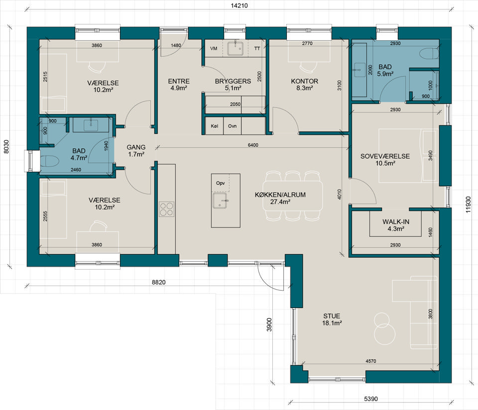 Prisen vokser med antallet af kvadratmeter, men kvadratmeterprisen kan variere alt efter valg af materialer og arkitektur. Tænk over, hvad du har brug for nu – og i fremtiden. Vi skal nok hjælpe dig med at få det maksimale ud af pladsen – nogle gange kræver store idéer færre kvadratmeter, end man skulle tro.