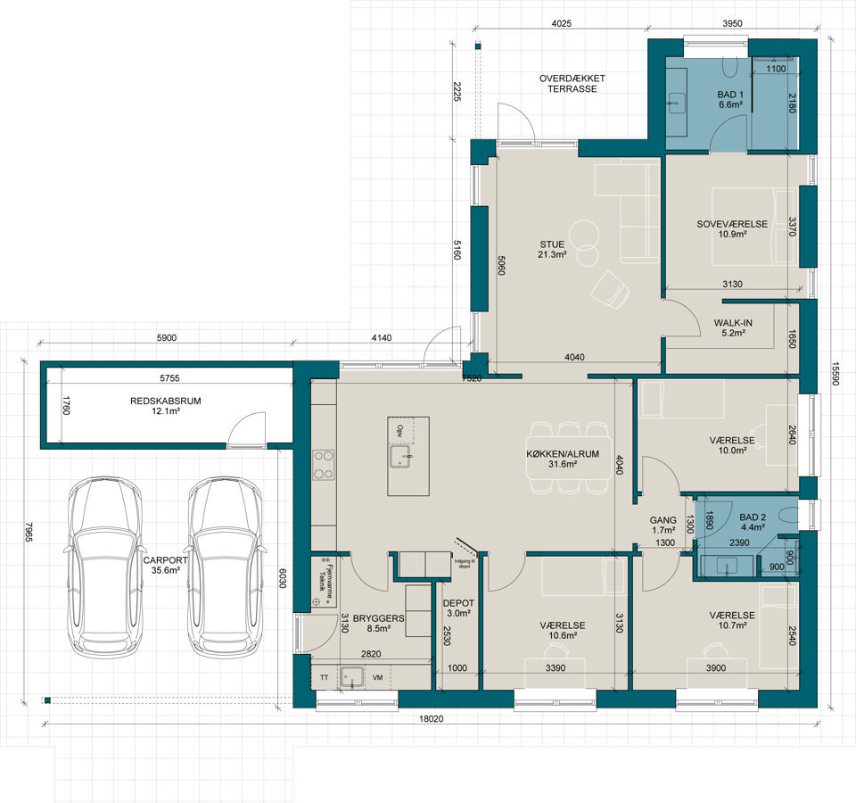 Prisen vokser med antallet af kvadratmeter, men kvadratmeterprisen kan variere alt efter valg af materialer og arkitektur. Tænk over, hvad du har brug for nu – og i fremtiden. Vi skal nok hjælpe dig med at få det maksimale ud af pladsen – nogle gange kræver store idéer færre kvadratmeter, end man skulle tro.