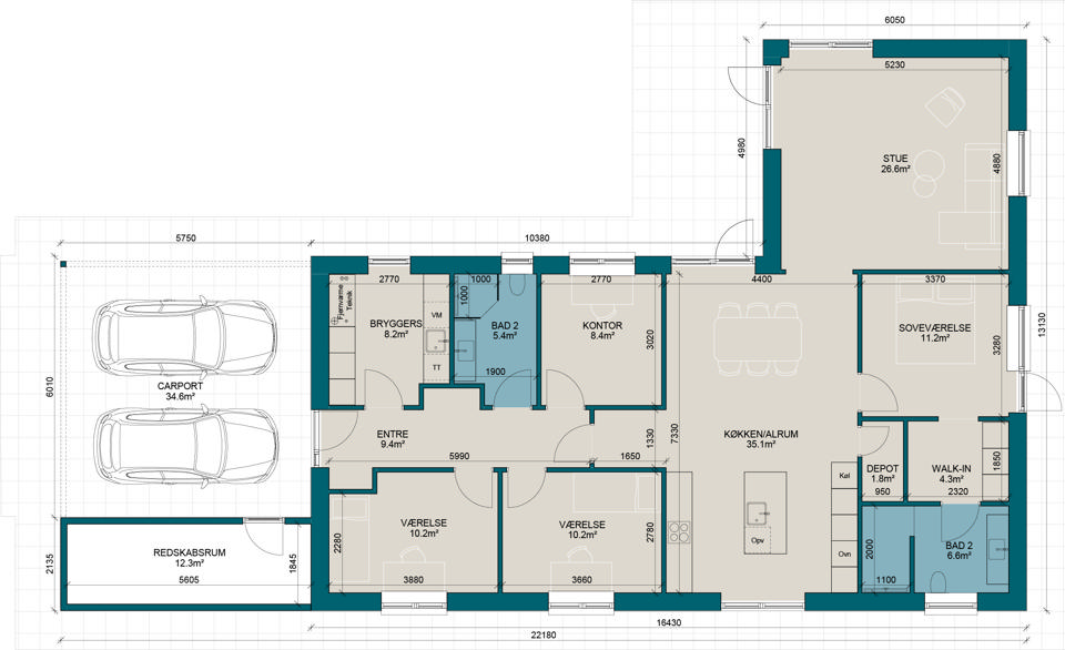 Prisen vokser med antallet af kvadratmeter, men kvadratmeterprisen kan variere alt efter valg af materialer og arkitektur. Tænk over, hvad du har brug for nu – og i fremtiden. Vi skal nok hjælpe dig med at få det maksimale ud af pladsen – nogle gange kræver store idéer færre kvadratmeter, end man skulle tro.