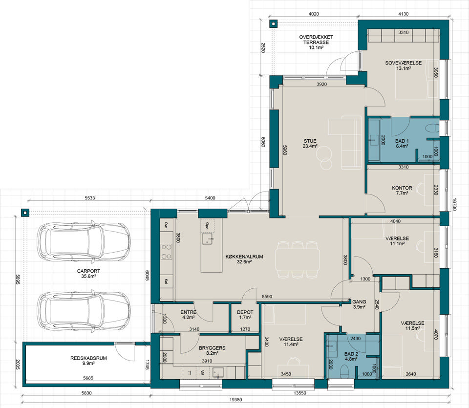 Prisen vokser med antallet af kvadratmeter, men kvadratmeterprisen kan variere alt efter valg af materialer og arkitektur. Tænk over, hvad du har brug for nu – og i fremtiden. Vi skal nok hjælpe dig med at få det maksimale ud af pladsen – nogle gange kræver store idéer færre kvadratmeter, end man skulle tro.