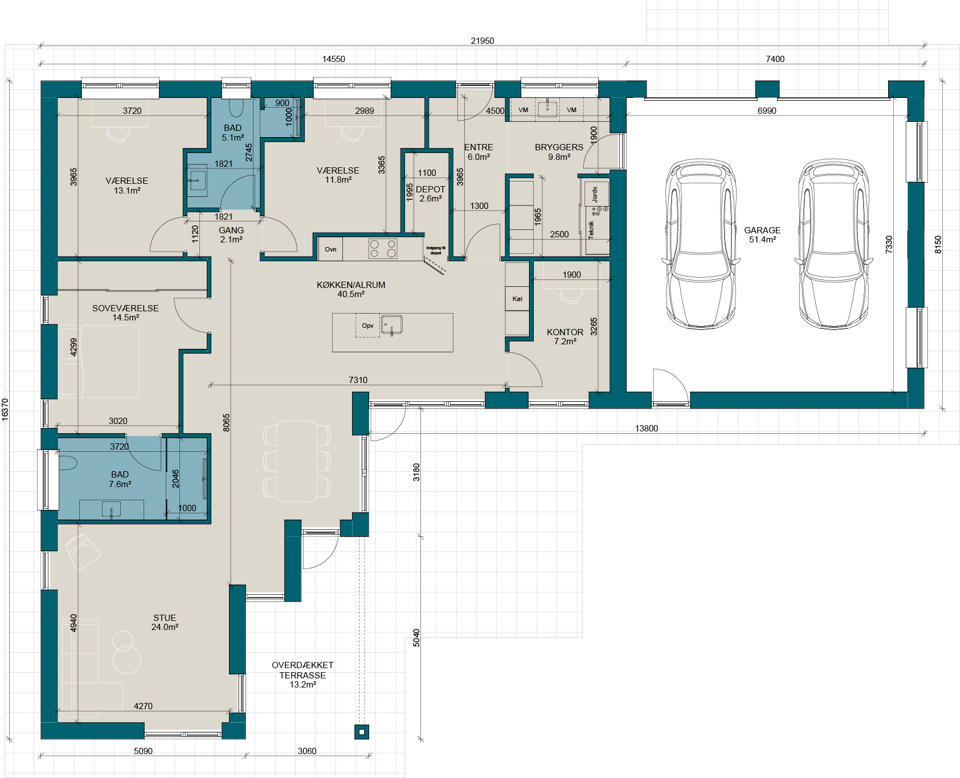 Prisen vokser med antallet af kvadratmeter, men kvadratmeterprisen kan variere alt efter valg af materialer og arkitektur. Tænk over, hvad du har brug for nu – og i fremtiden. Vi skal nok hjælpe dig med at få det maksimale ud af pladsen – nogle gange kræver store idéer færre kvadratmeter, end man skulle tro.