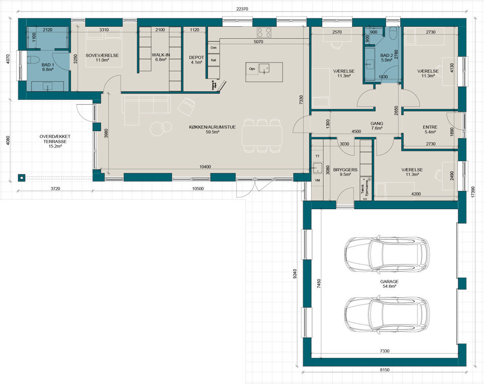 Prisen vokser med antallet af kvadratmeter, men kvadratmeterprisen kan variere alt efter valg af materialer og arkitektur. Tænk over, hvad du har brug for nu – og i fremtiden. Vi skal nok hjælpe dig med at få det maksimale ud af pladsen – nogle gange kræver store idéer færre kvadratmeter, end man skulle tro.