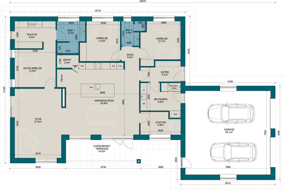 V185-2 | Plantegning til nybyg | Milton Huse