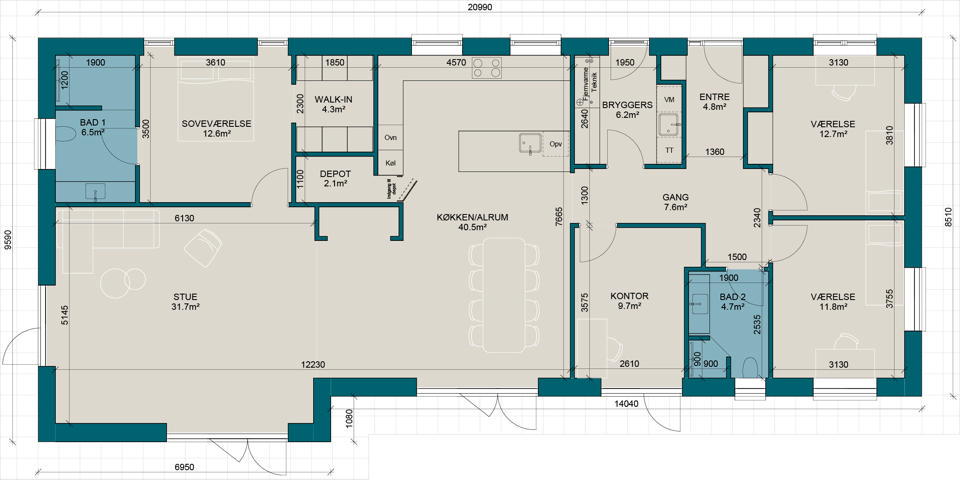 Prisen vokser med antallet af kvadratmeter, men kvadratmeterprisen kan variere alt efter valg af materialer og arkitektur. Tænk over, hvad du har brug for nu – og i fremtiden. Vi skal nok hjælpe dig med at få det maksimale ud af pladsen – nogle gange kræver store idéer færre kvadratmeter, end man skulle tro.